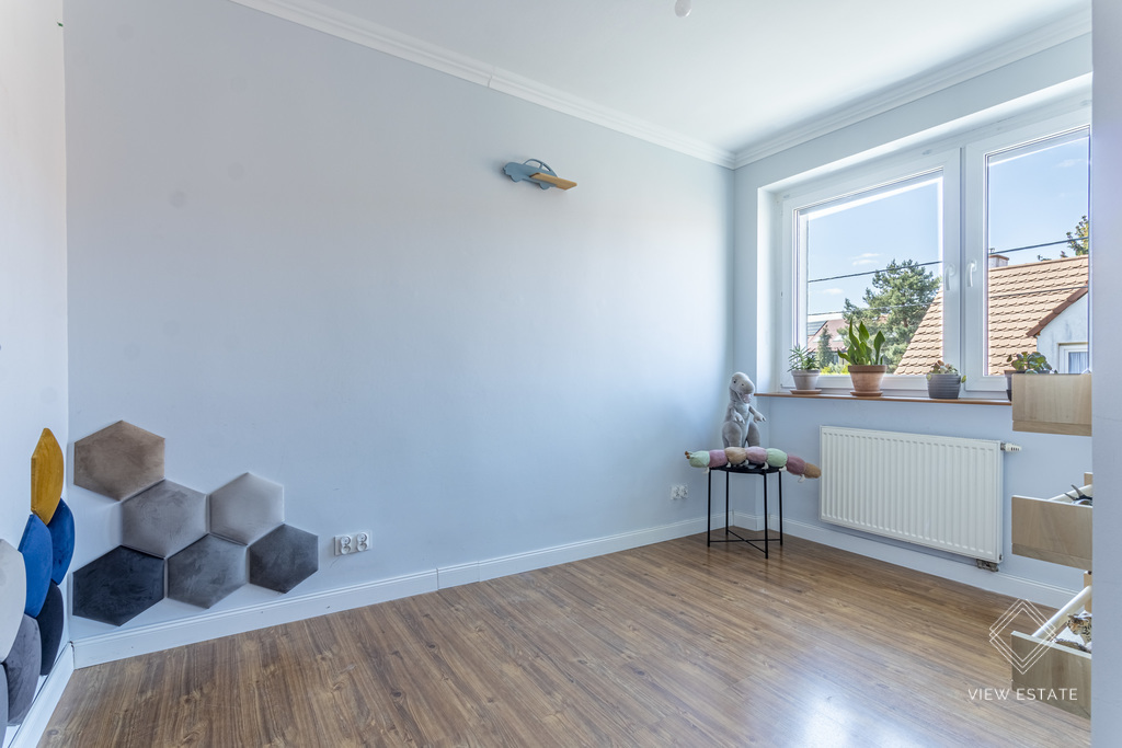 On the first floor, there is a large bathroom with a bathtub and 3 bedrooms - the rooms will be empty (except for built-in wardrobes in the bedroom and office). There is access to a spacious upper terrace from the bedroom.