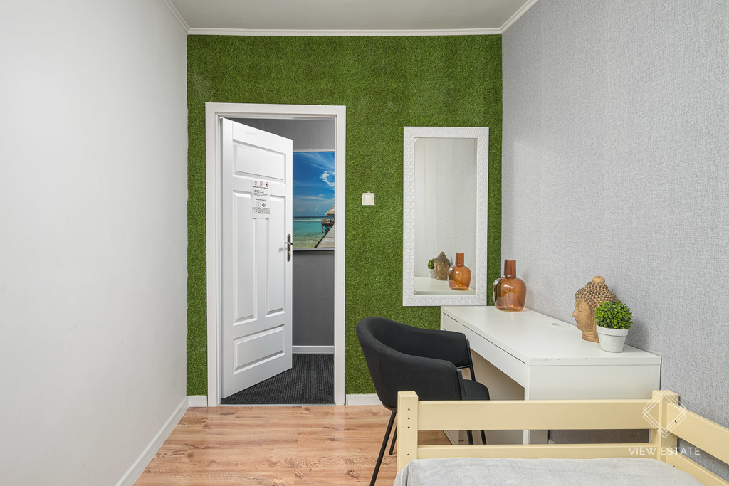 The property is located on the 5th (top) floor of a beautiful tenement house from 1920. The building has undergone facade renovations under the supervision of a conservator of monuments. There is a 24-hour reception with security on the ground floor. The rooms are accessible by an elevator.
