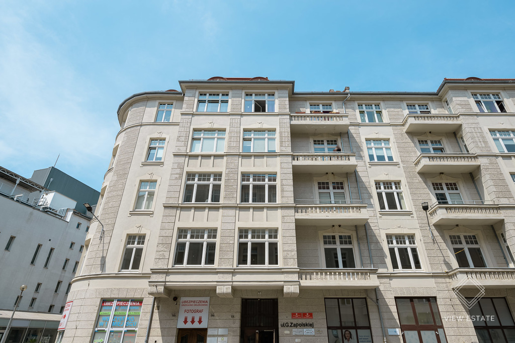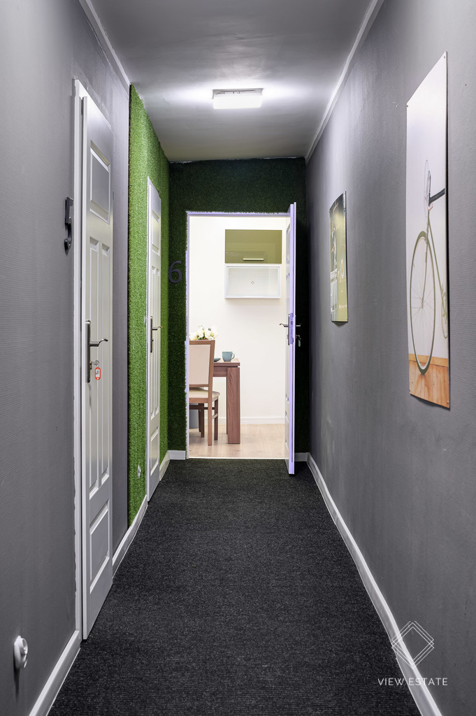 Lokal znajduje się na 5 (ostatnim) piętrze przepięknej kamienicy z 1920 roku. Budynek przeszedł renowacje elewacji pod okiem konserwatora zabytków. Na parterze znajduje się całodobowa recepcja z ochroną. Do pokoi prowadzi winda.